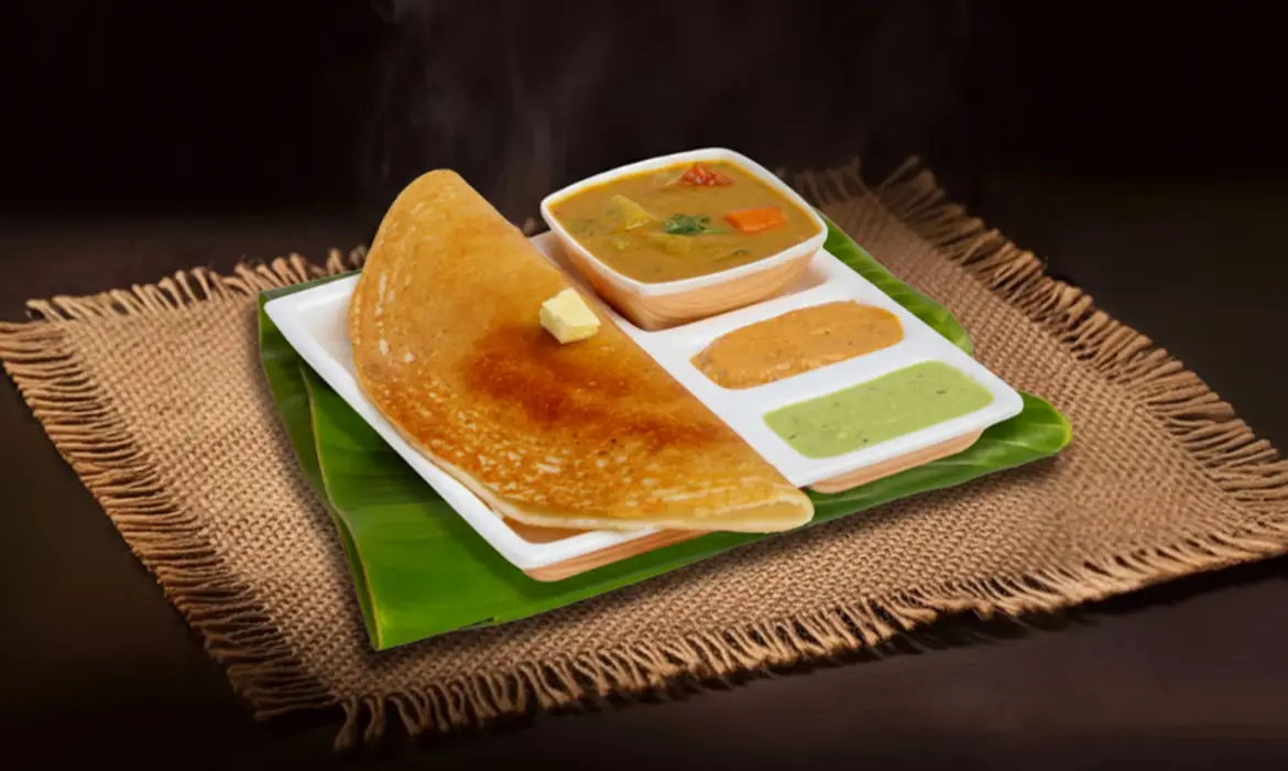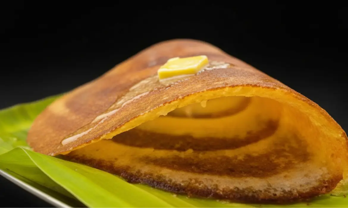 The benne dosa is a South Indian butter dosa originating from Karnataka. It’s known for its soft yet crispy texture and generous use of butter.